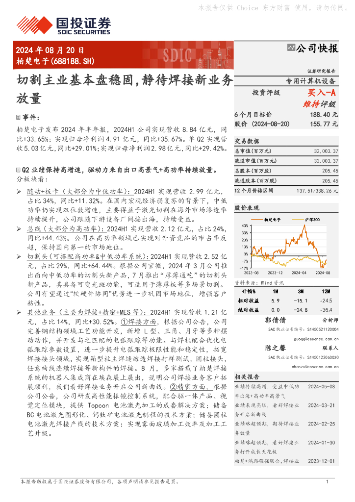国投证券:柏楚电子(688188)-切割主业基本盘稳固,静待焊接新业务放量.pdf