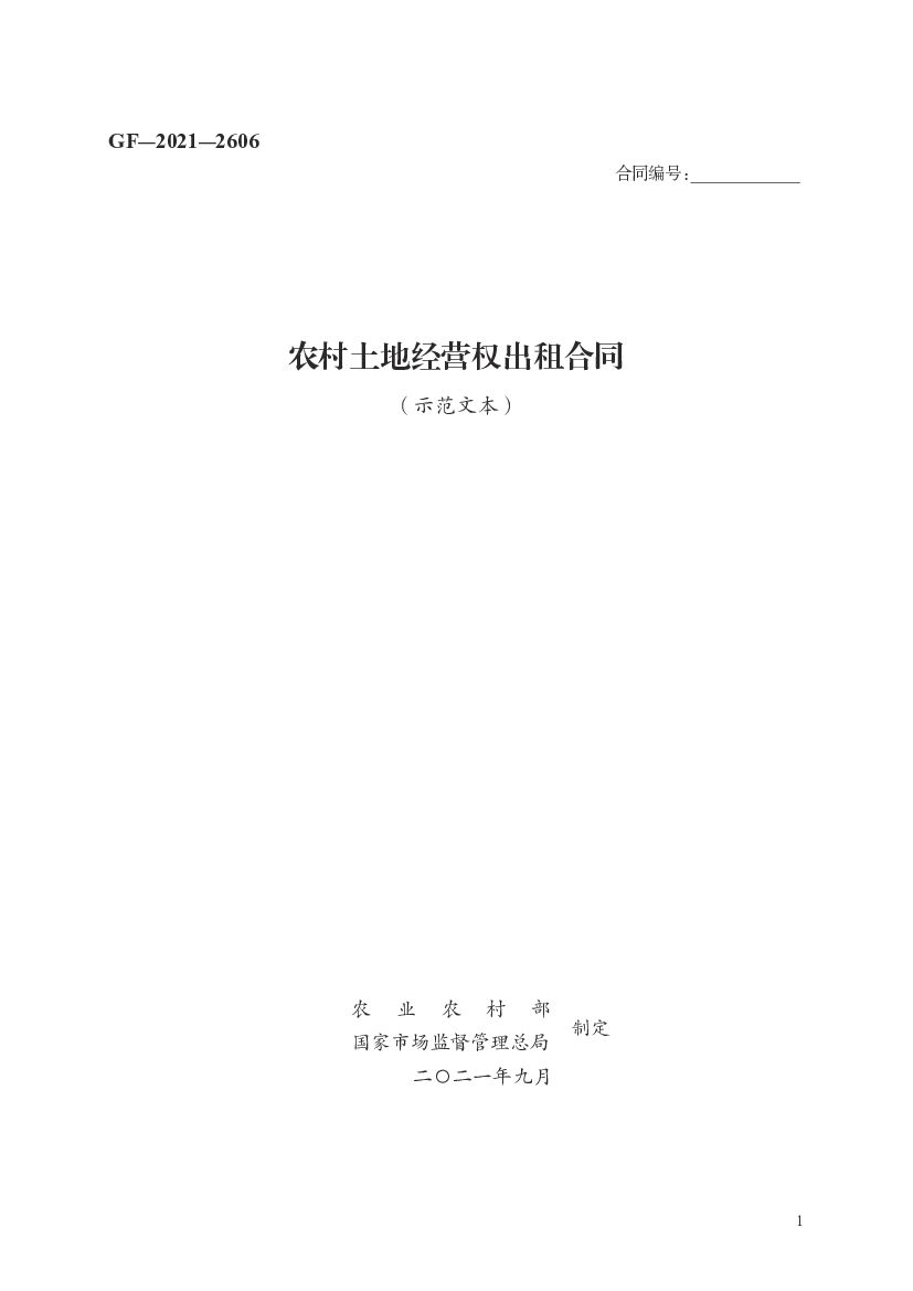 GF-2021-2606 农业农村部:农村土地经营权出租合同(示范文本).pdf