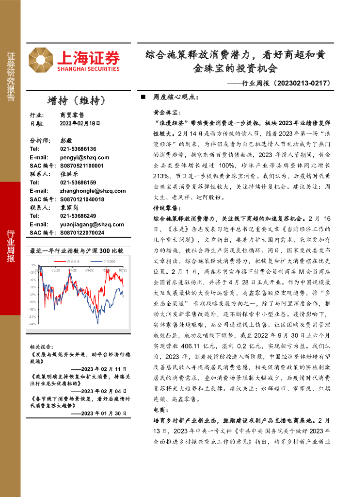 上海证券:商贸零售行业周报:综合施策释放消费潜力,看好商超和黄金珠宝的投资机会.pdf