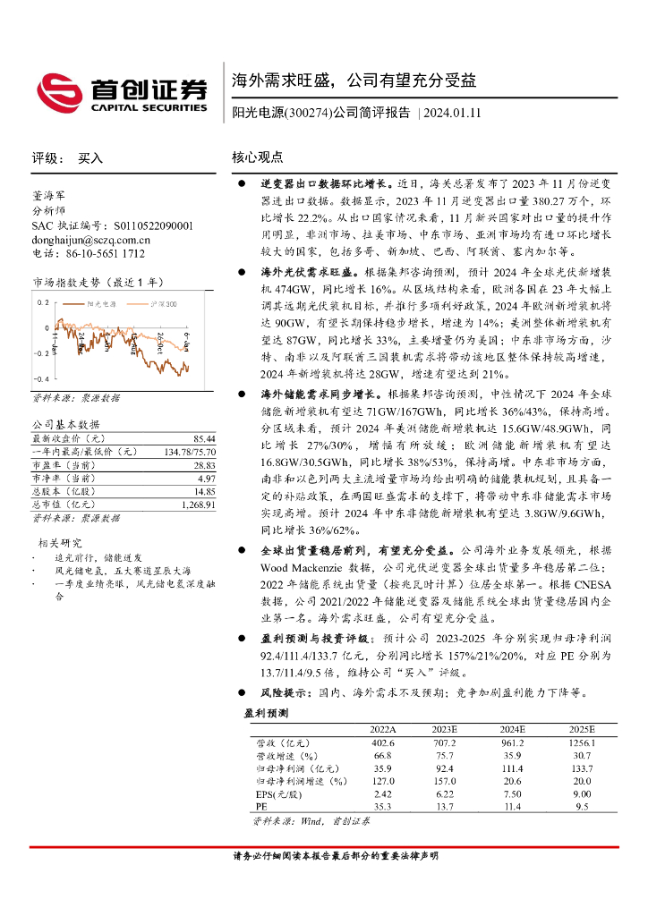 首创证券:阳光电源(300274)-公司简评报告:海外需求旺盛,公司有望充分受益.pdf