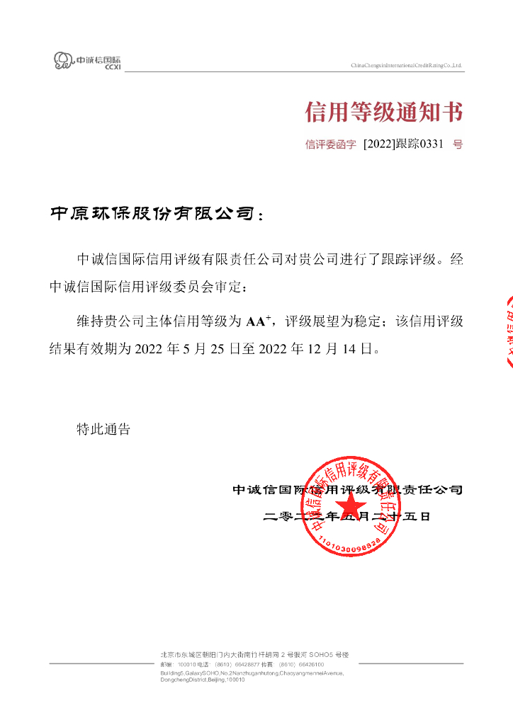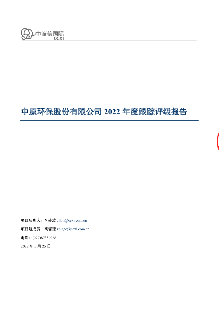 中诚信:中原环保股份有限公司2022年度跟踪评级报告.pdf
