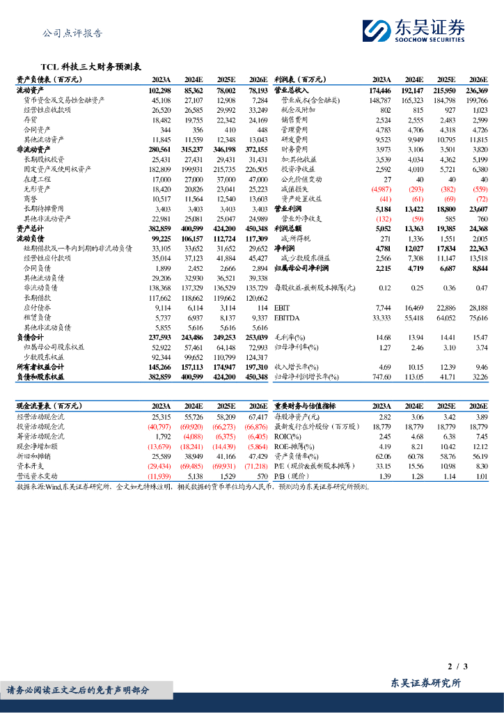 东吴证券:TCL科技(000100)-2024年中报点评:面板业务盈利大幅改善,光伏业务静待修复.pdf