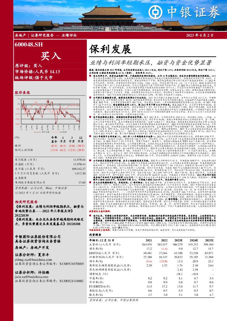 中银证券:保利发展(600048)-业绩与利润率短期承压,融资与资金优势显著.pdf