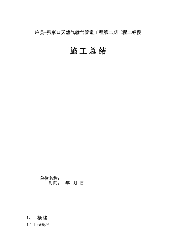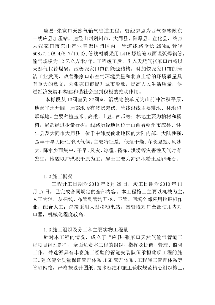 [湖北]张家口天然气输气管道工程施工总结.doc