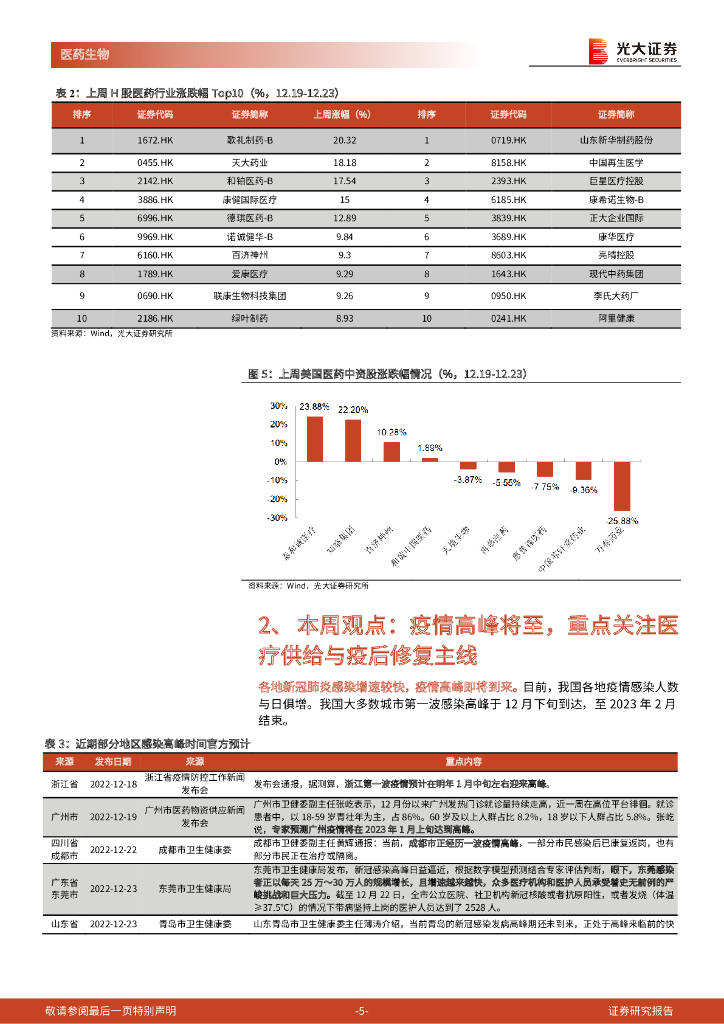 光大证券:医药生物行业跨市场周报:疫情高峰将至,重点关注医疗供给与疫后修复主线.pdf