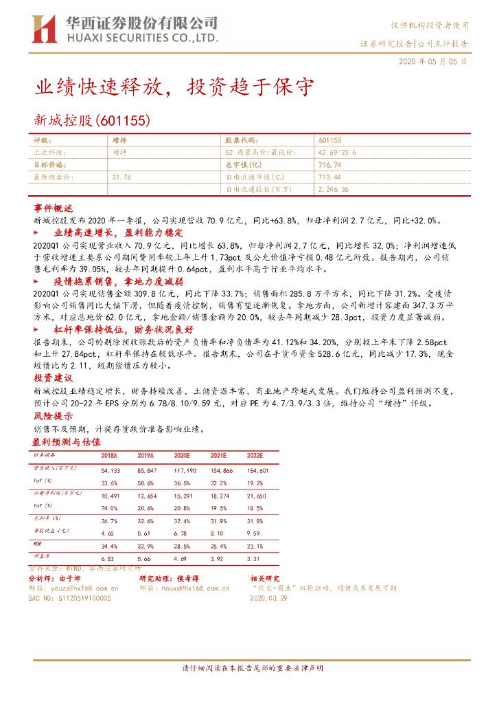 华西证券:新城控股(601155)-业绩快速释放,投资趋于保守.pdf