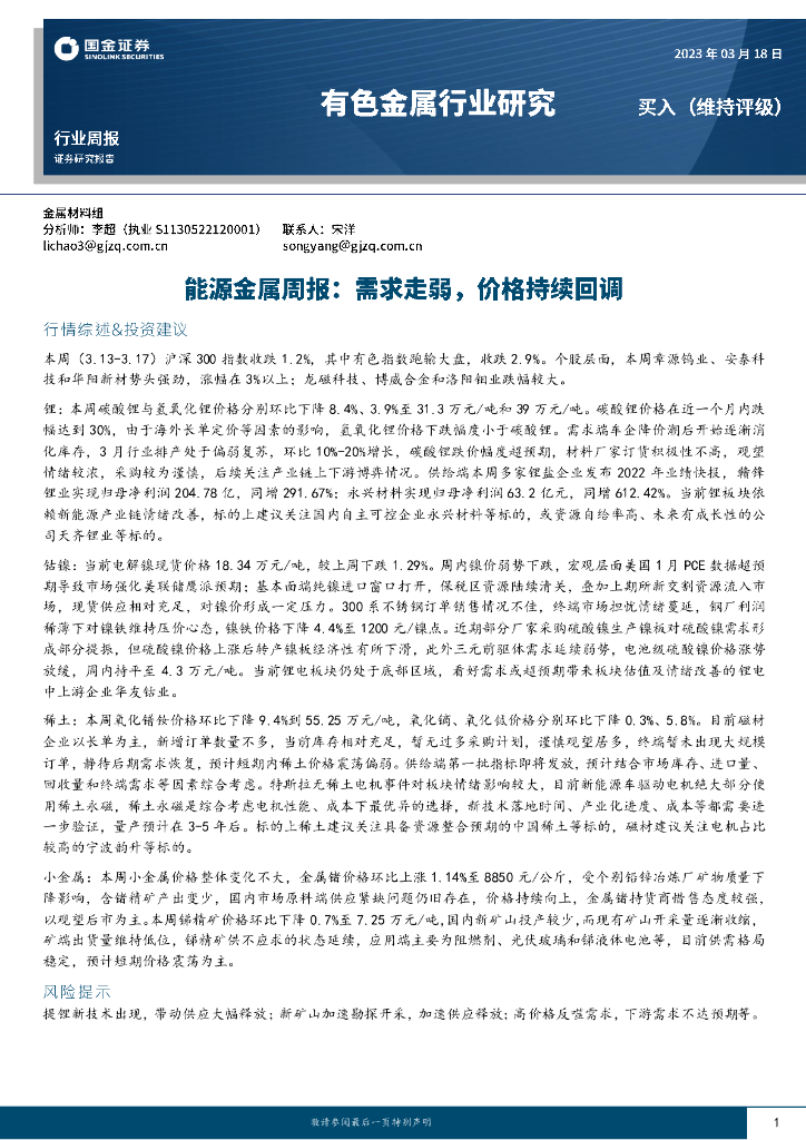 国金证券:能源金属周报:需求走弱,价格持续回调.pdf