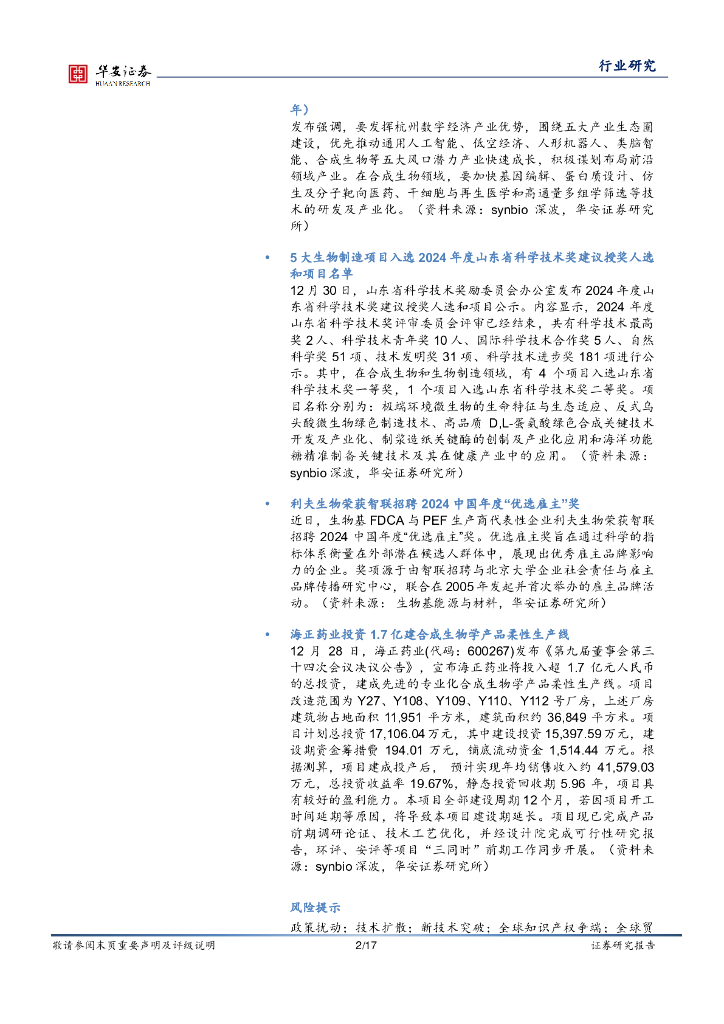 华安证券:基础化工行业周报:合成生物学周报:工信部出台生物制造创新发展政策,杭州市发布合成生物产业培育行动计划.pdf