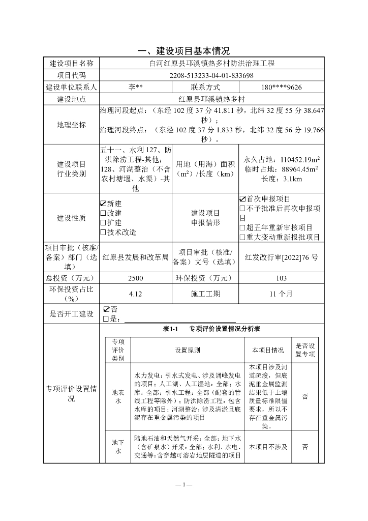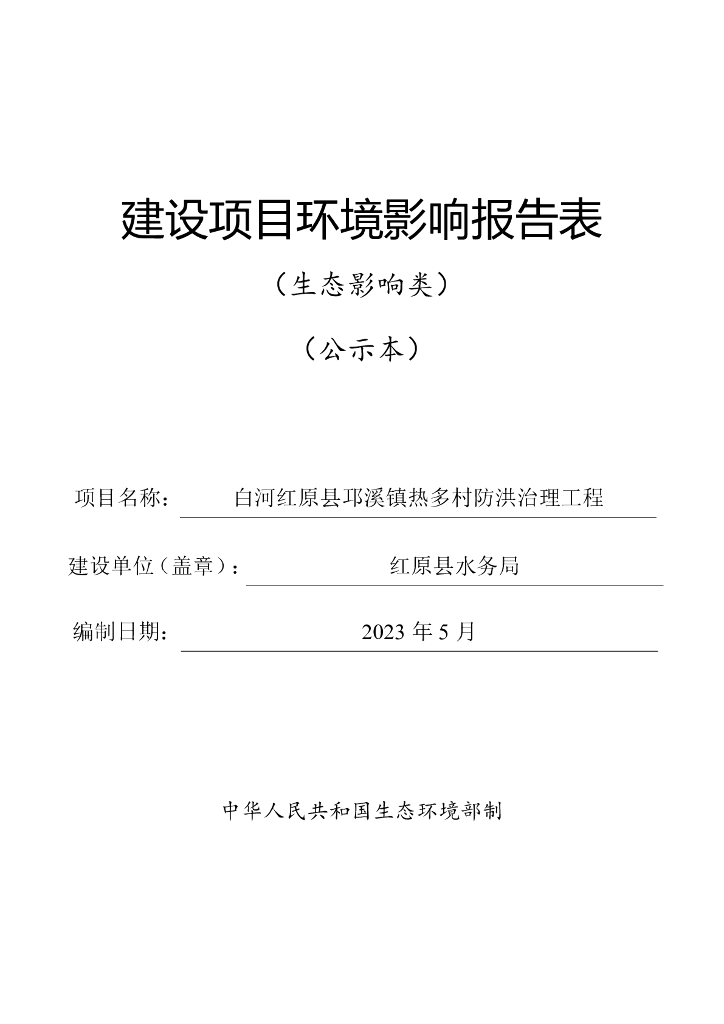白河红原县邛溪镇热多村防洪治理工程建设项目环境影响报告表(生态影响类).pdf