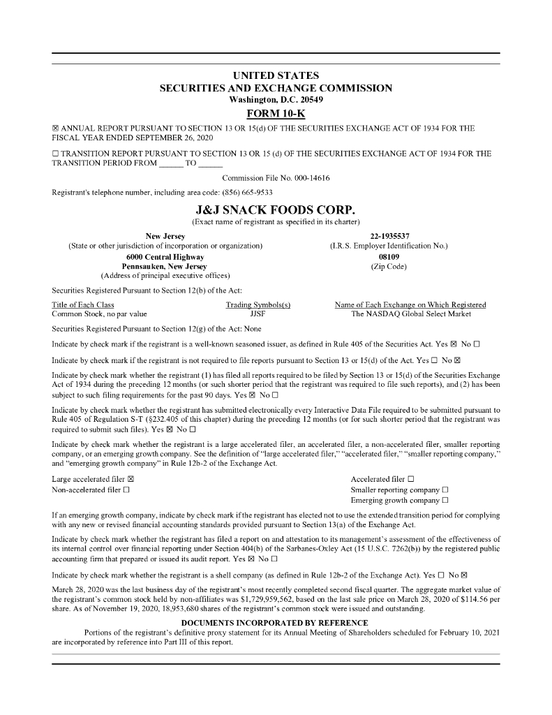 J&J Snack Foods Corp.(JJSF)2020财年年度报告(英文版).pdf