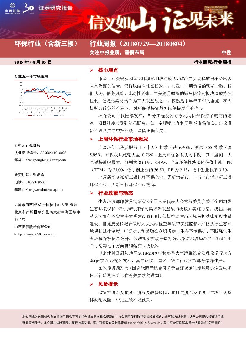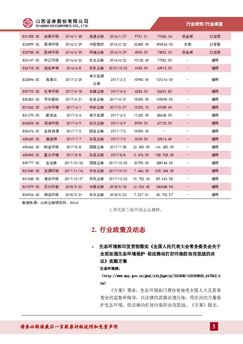 山西证券:环保行业(含新三板)周报:关注中报业绩,谨慎布局.pdf