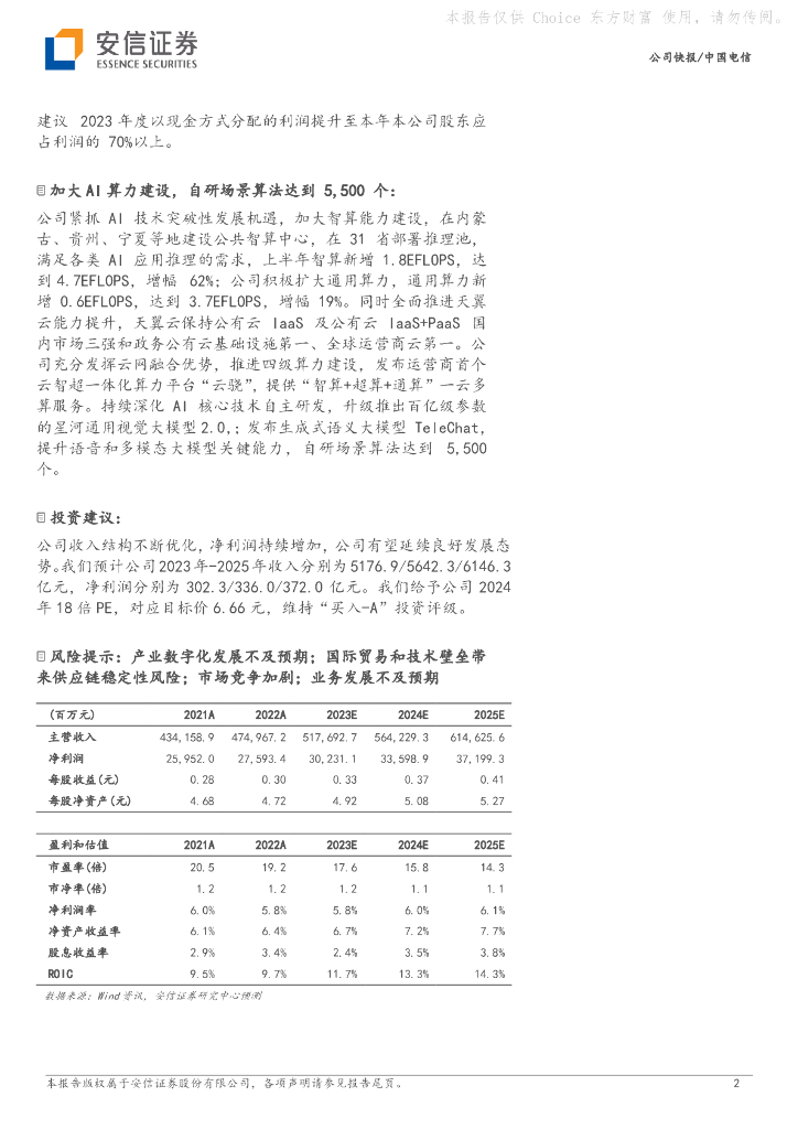 安信证券:中国电信(601728)-业绩稳健增长,加大AI算力建设.pdf
