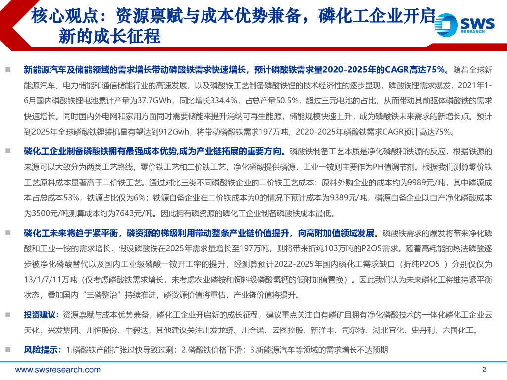 申万宏源:磷酸铁行业深度报告:资源禀赋与成本优势兼备,磷化工企业开启新的成长征程.pdf