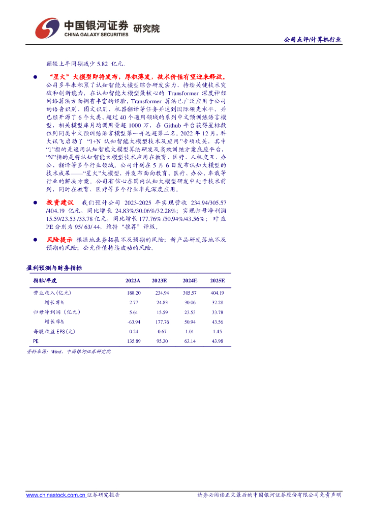 中国银河:科大讯飞(002230)-“星火”大模型即将发布,全年实现高质量增长目标不变.pdf