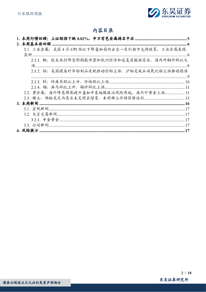 东吴证券:有色金属行业跟踪周报:海外降息预期提升叠加中东地缘政治风险再起,海内外黄金上涨.pdf