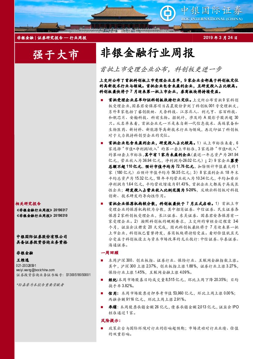 中银国际:非银金融行业周报:首批上市受理企业公布,科创板更进一步.pdf