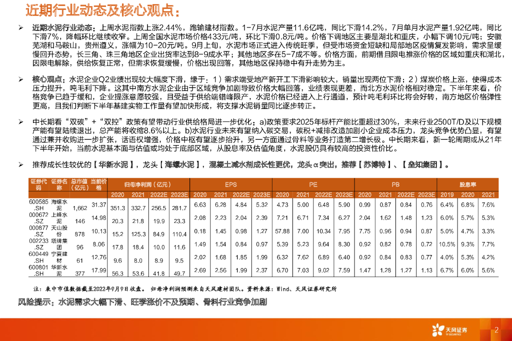 天风证券:水泥行业研究周报:需求回升较缓慢,价格底部震荡.pdf