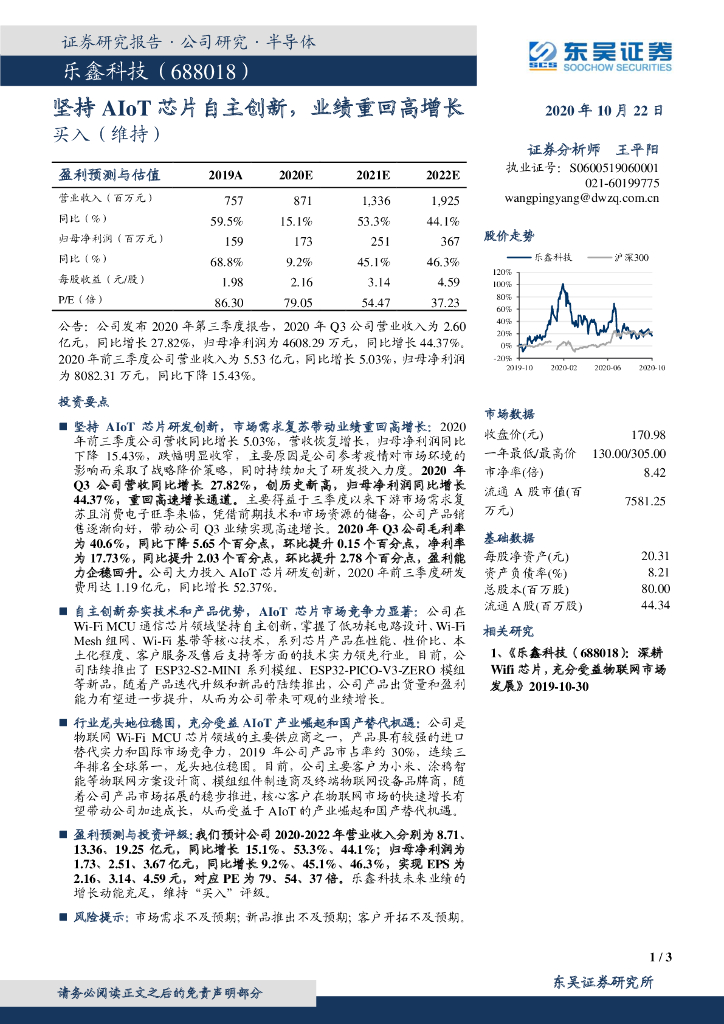 东吴证券:乐鑫科技(688018)-坚持AIoT芯片自主创新,业绩重回高增长.pdf