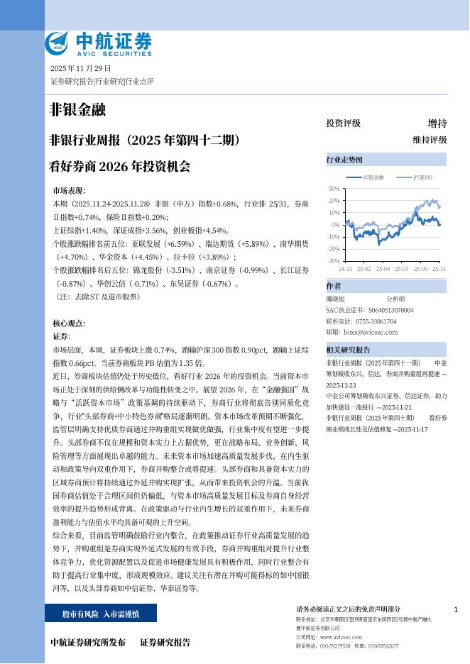 中航证券:非银行业周报(2025年第四十二期):看好券商2026年投资机会.pdf