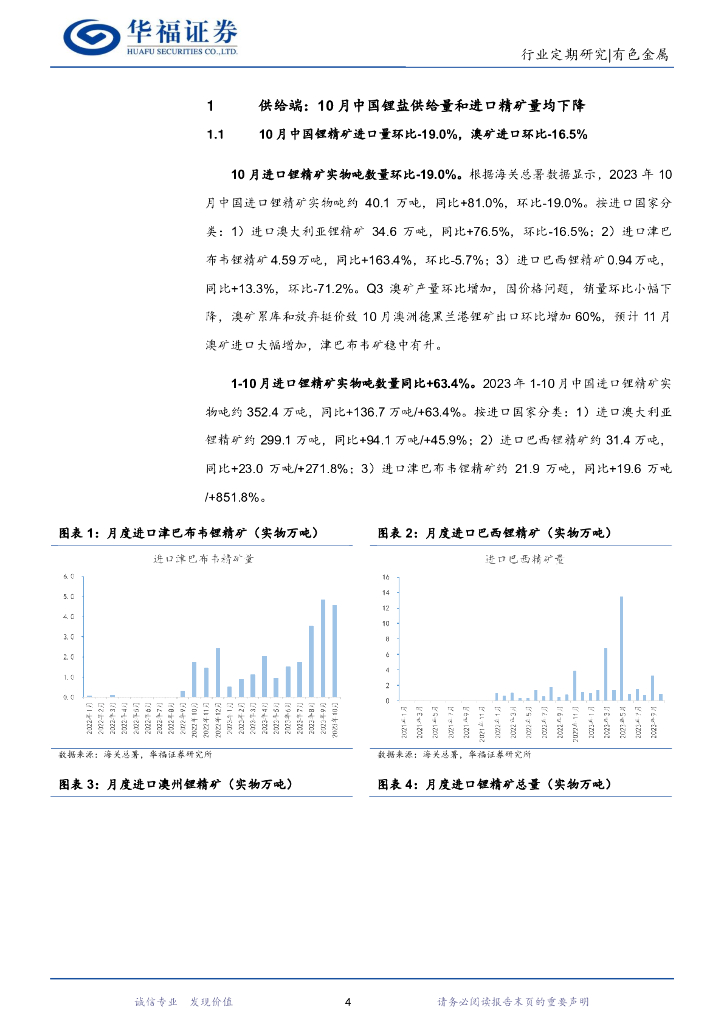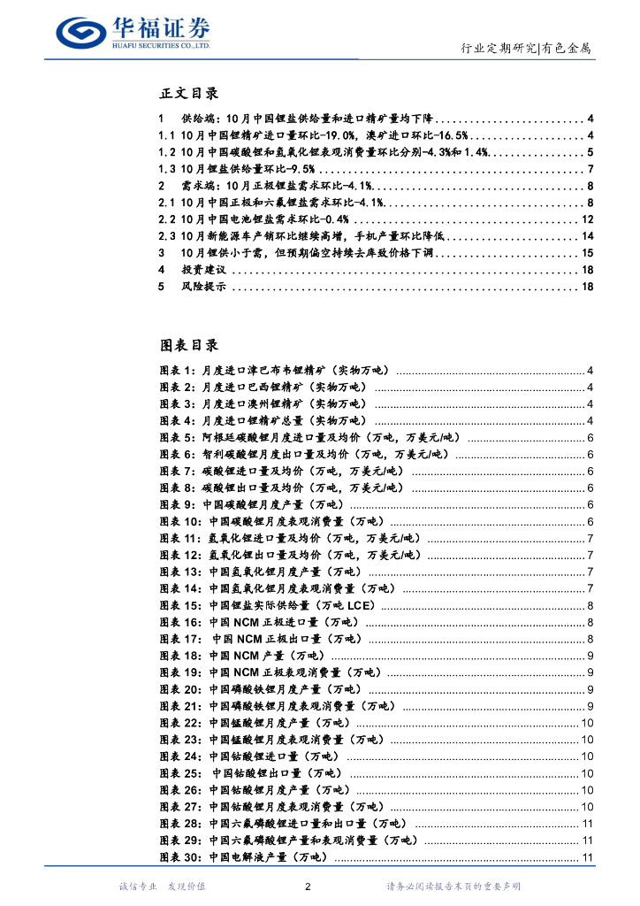 华福证券:锂产业链月度追踪:10月供给收缩带动锂价反弹,11月进口激增致锂价承压下跌.pdf