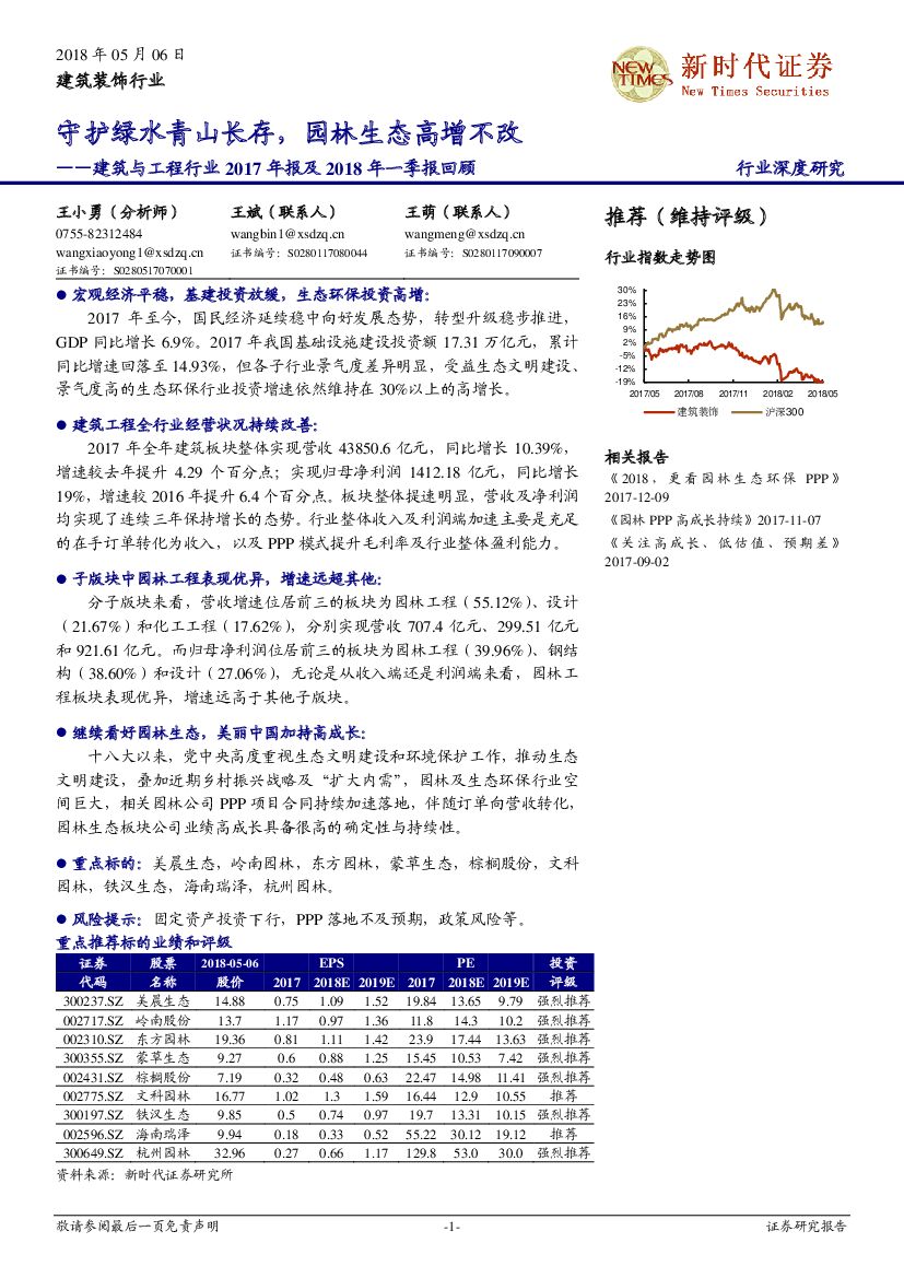 新时代证券:建筑与工程行业2017年报及2018年一季报回顾:守护绿水青山长存,园林生态高增不改.pdf