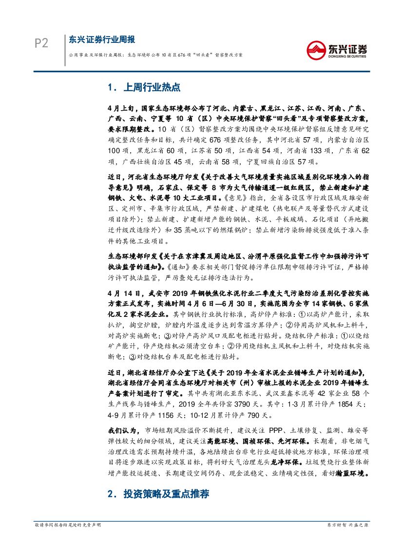 东兴证券:公用事业及环保行业周报:生态环境部公布10省区676项“回头看”督察整改方案.pdf