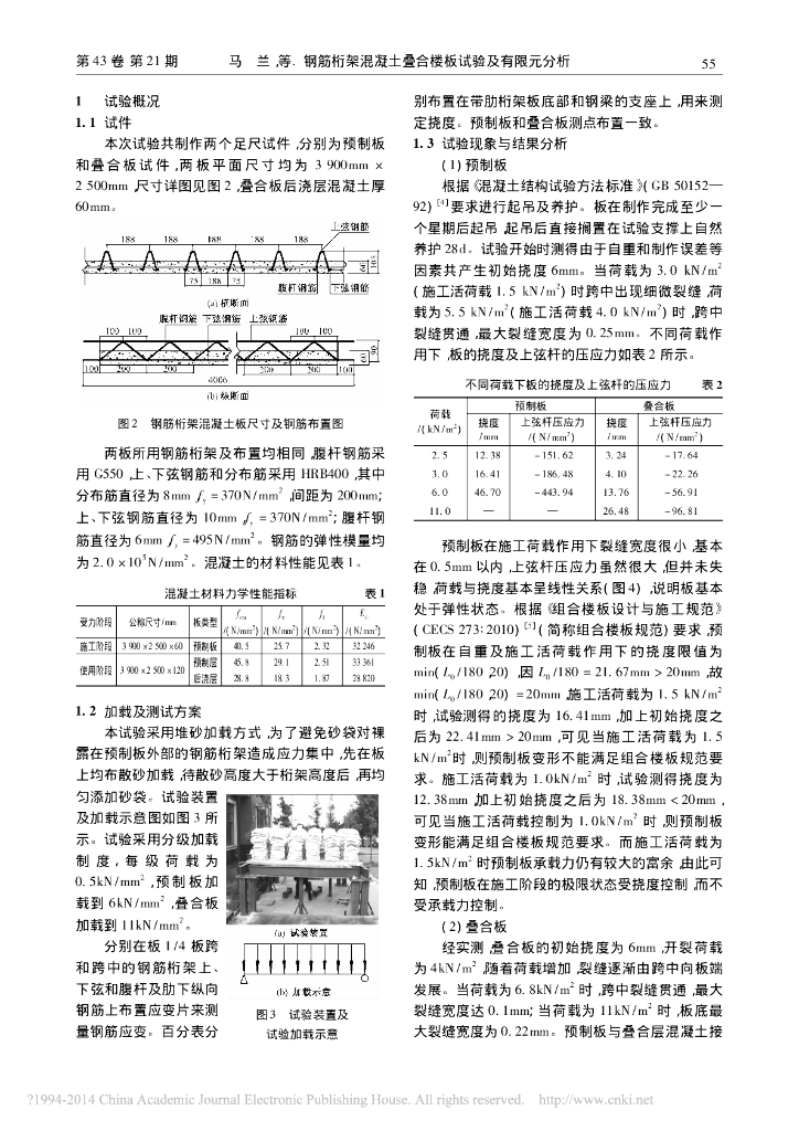 钢筋桁架混凝土叠合楼板试验及有限元分析.pdf
