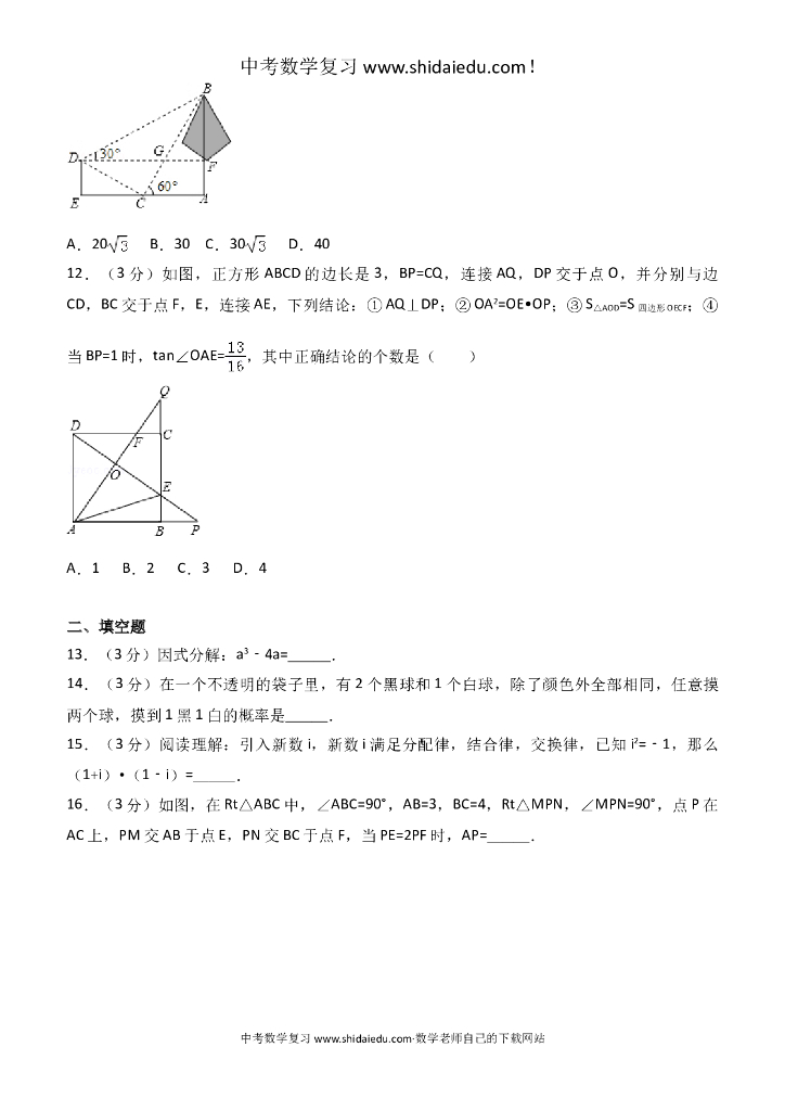 中考数学试题(含答案解析)-(39).doc