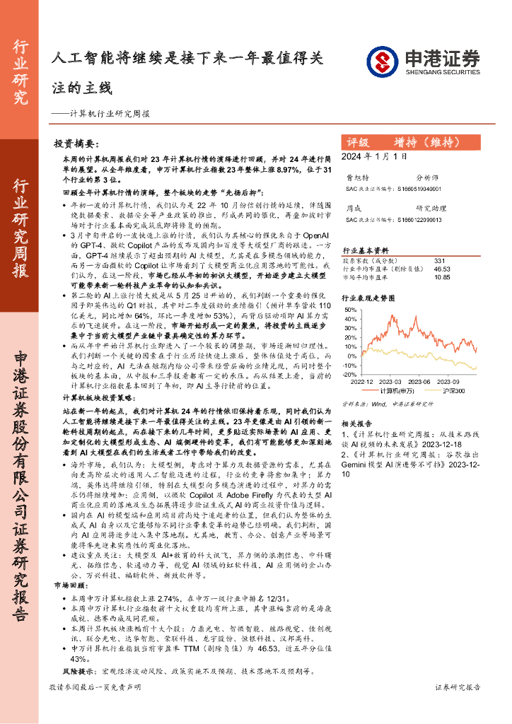 申港证券:计算机行业研究周报:人工智能将继续是接下来一年最值得关注的主线.pdf