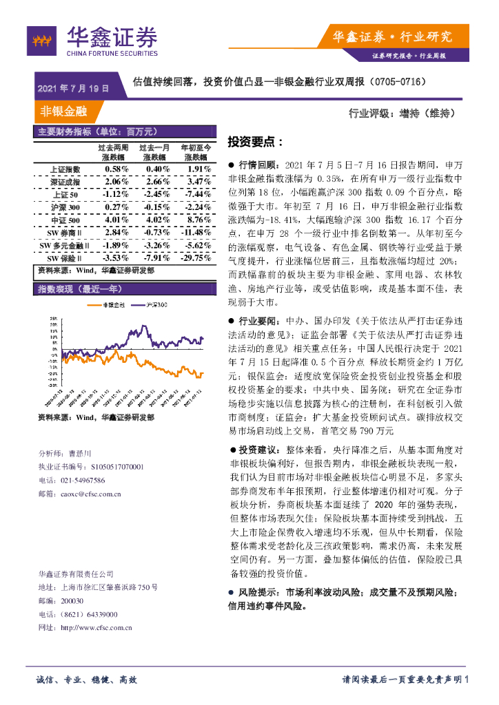华鑫证券:非银金融行业双周报:估值持续回落,投资价值凸显.pdf