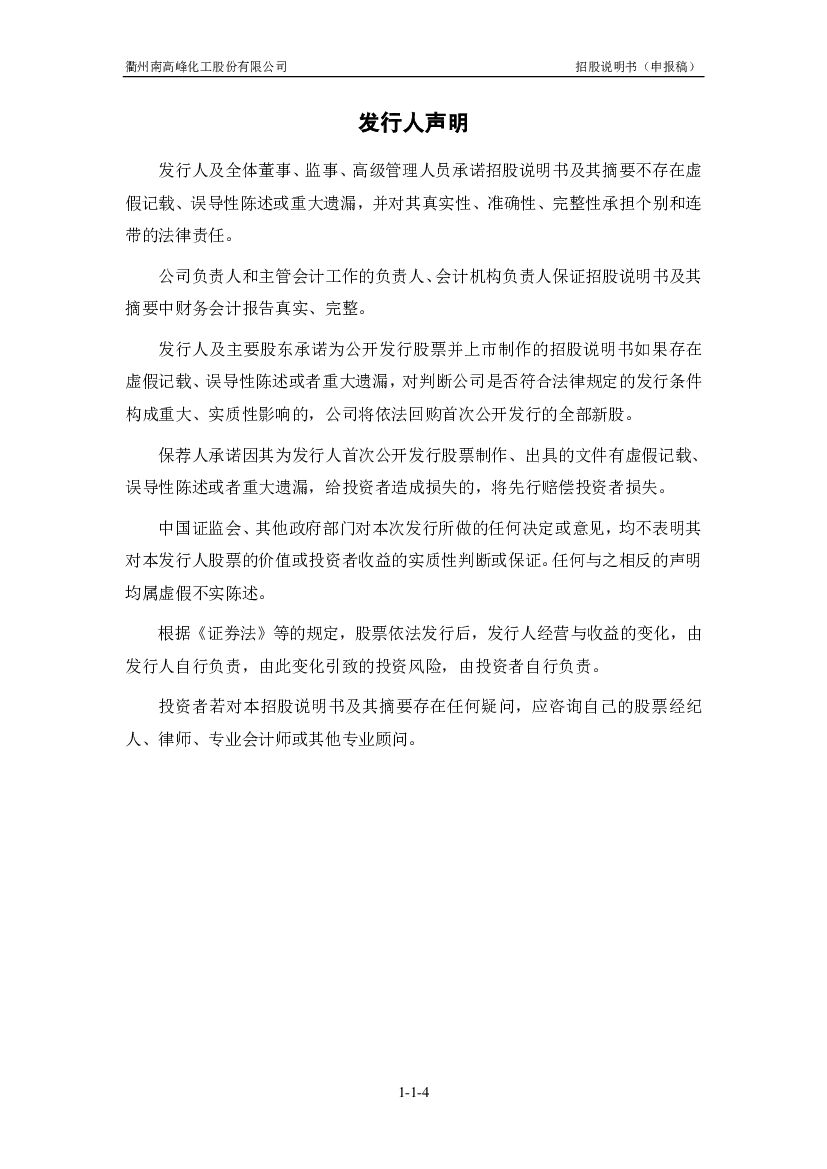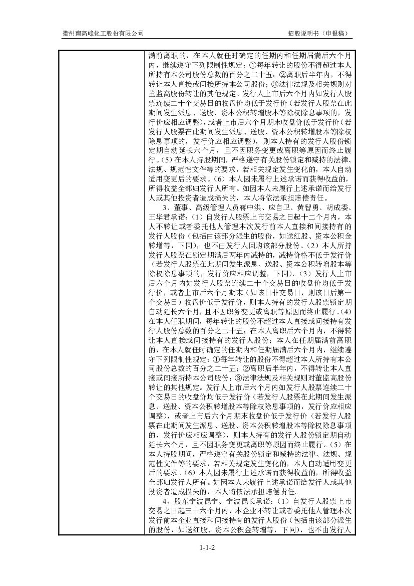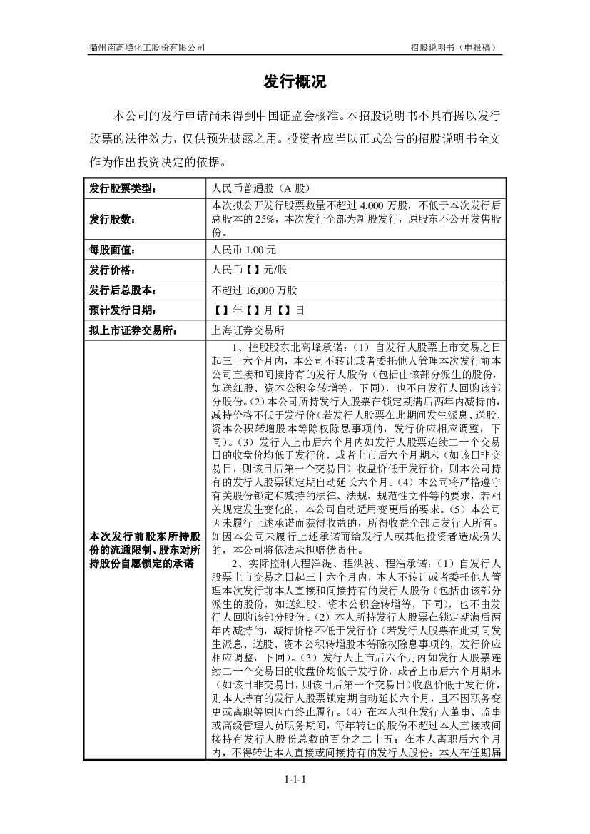 衢州南高峰化工股份有限公司沪市主板IPO上市招股说明书.pdf