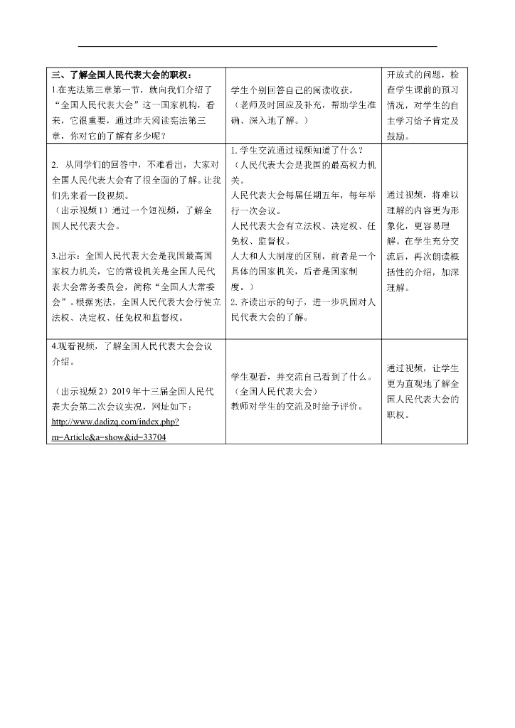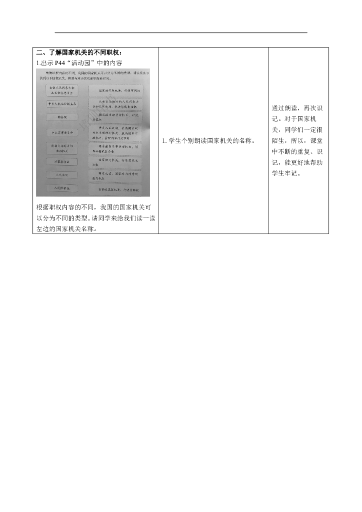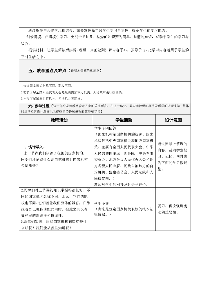道德与法制5.国家机构有哪些 第2课时 表格式 教案.doc
