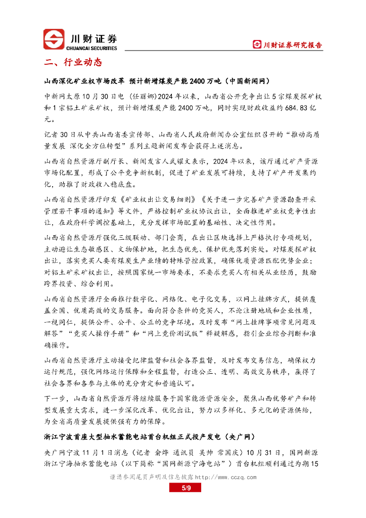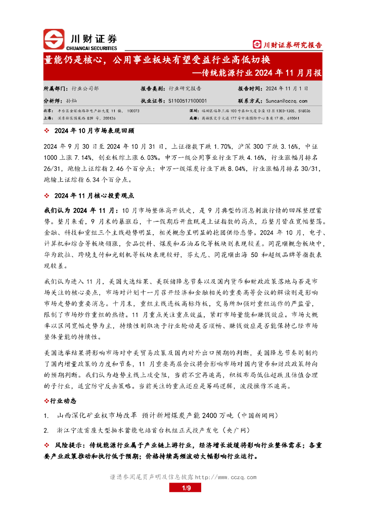 川财证券:传统能源行业2024年11月月报:量能仍是核心,公用事业板块有望受益行业高低切换.pdf