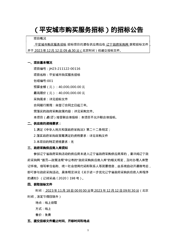 辽宁省盘锦市平安城市购买服务招标中标(成交)结果公告.doc