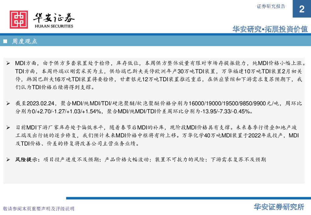 华安证券:化工行业:万华化学基本面周度动态跟踪:MDI TDI供给端受影响,后续价格仍有支撑.pdf