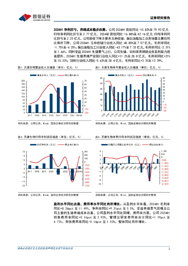 国信证券:天康生物(002100)-2024半年报点评:2024H1业绩同比扭亏为盈,养殖成本稳步改善.pdf