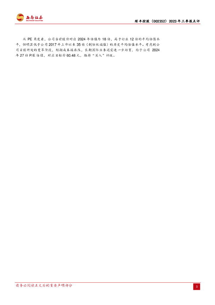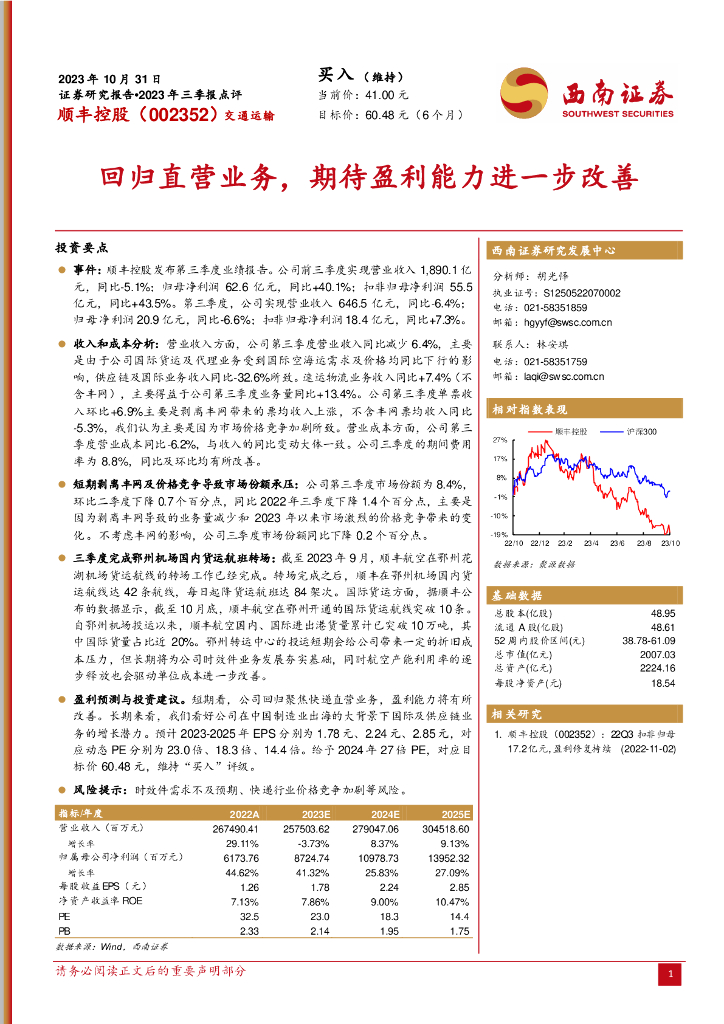 西南证券:顺丰控股(002352)-2023年三季报点评:回归直营业务,期待盈利能力进一步改善.pdf