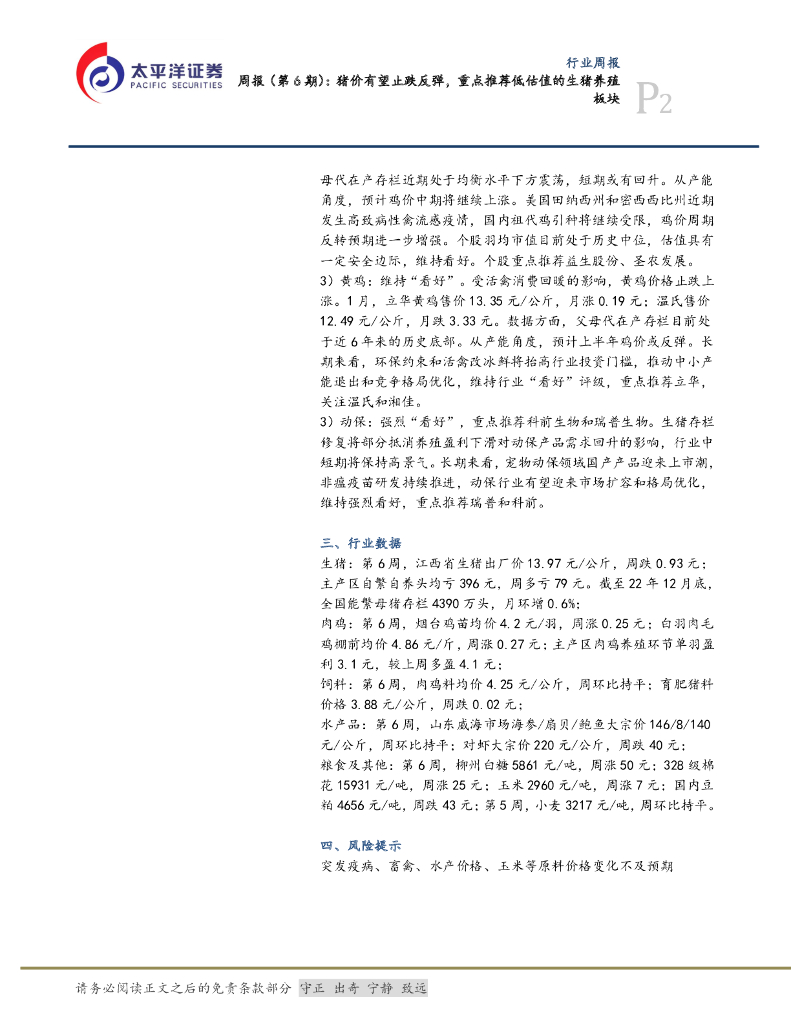 太平洋证券:农林周报(第6期):猪价有望止跌反弹,重点推荐低估值的生猪养殖板块.pdf