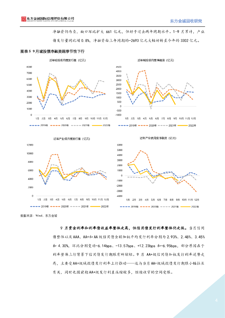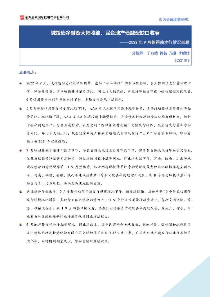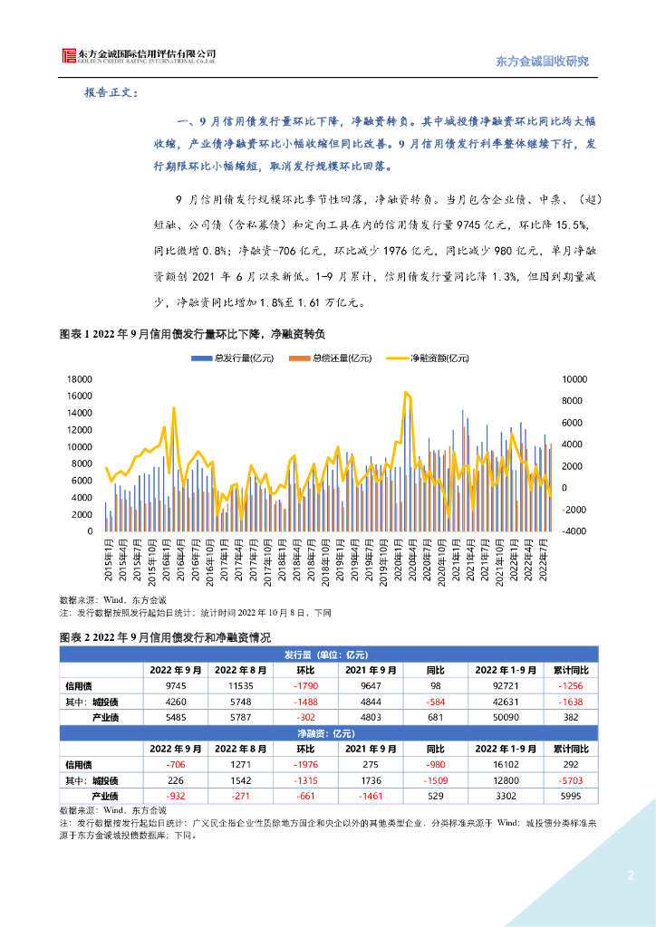 东方金诚:2022年9月信用债发行回顾-城投债净融资大幅收缩,民企地产债融资缺口收窄.pdf