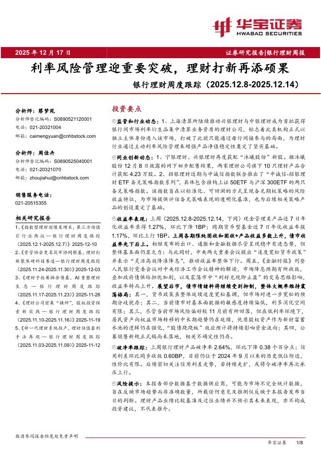 华宝证券:银行理财周度跟踪:利率风险管理迎重要突破,理财打新再添硕果.pdf