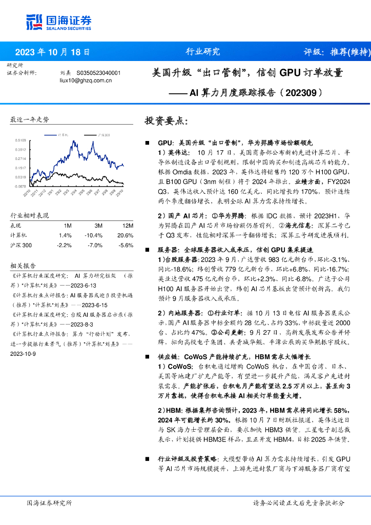 国海证券:AI算力月度跟踪报告(202309):美国升级“出口管制”,信创GPU订单放量.pdf