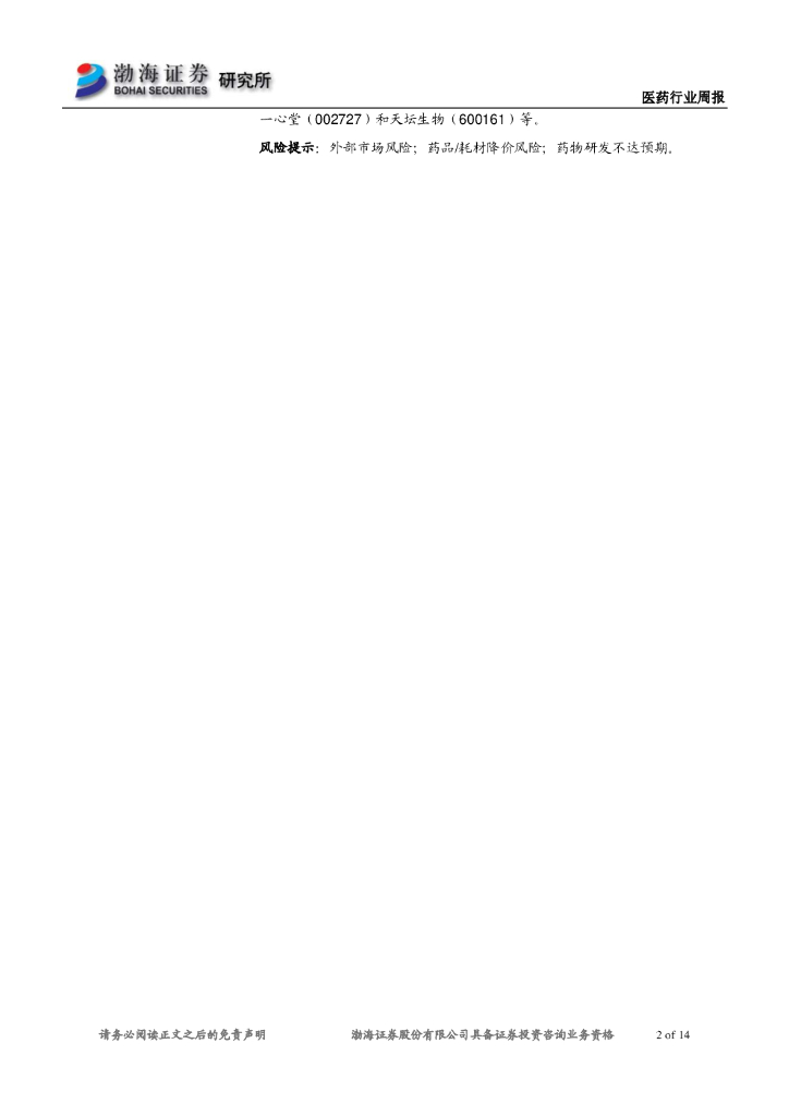 渤海证券:医药行业周报:冠脉支架集采方案出台,兼顾使用习惯和价格.pdf