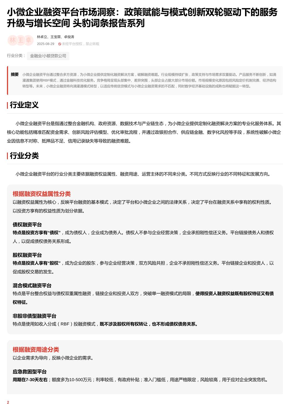 头豹研究院:小微企业融资平台市场洞察:政策赋能与模式创新双轮驱动下的服务升级与增长空间头豹词条报告系列.pdf