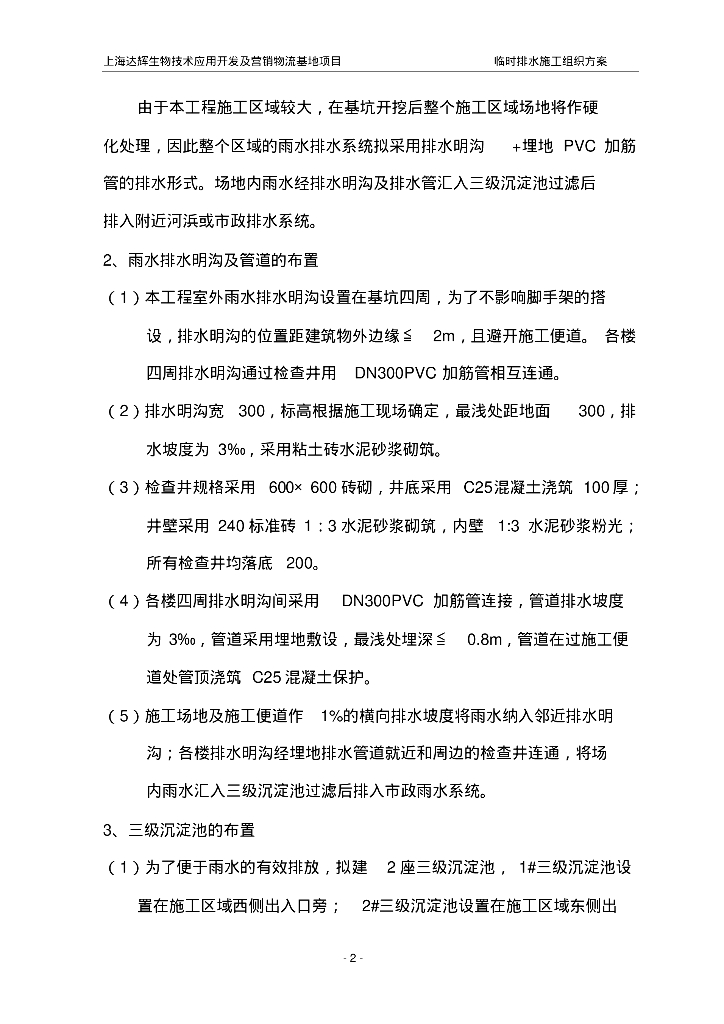 [上海]达辉应用开发及营销物流基地项目临时排水施工组织方案.pdf
