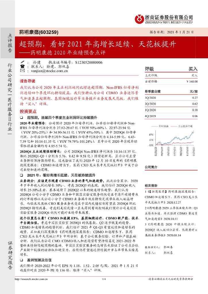 浙商证券:药明康德2020年业绩预告点评:超预期,看好2021年高增长延续、天花板提升.pdf