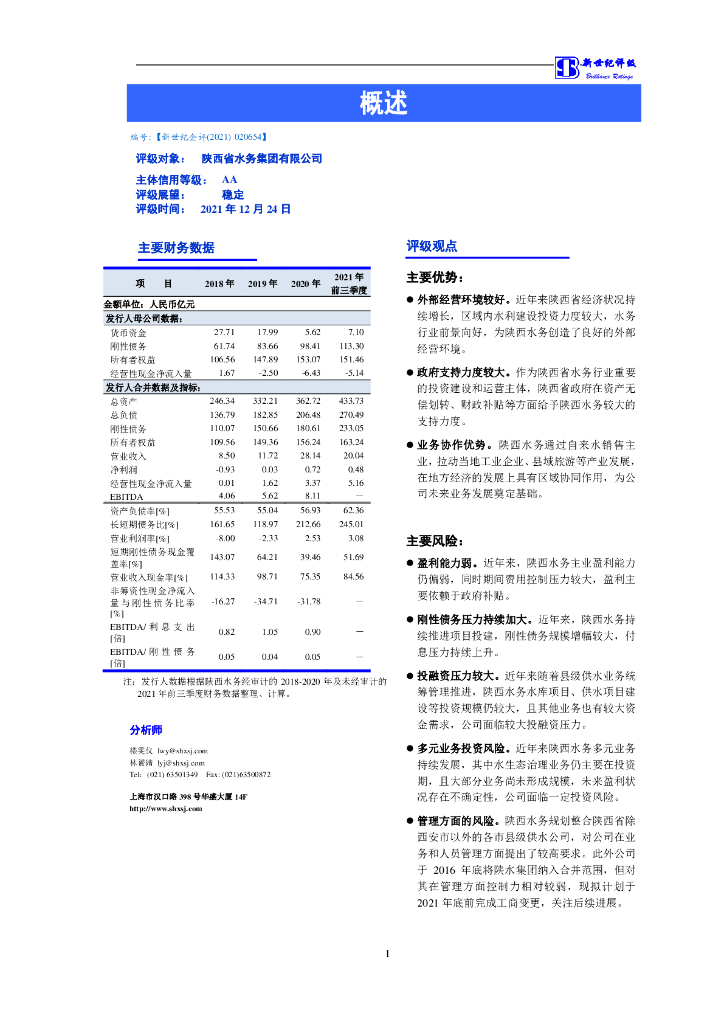 新世纪:陕西省水务集团有限公司信用评级报告.pdf
