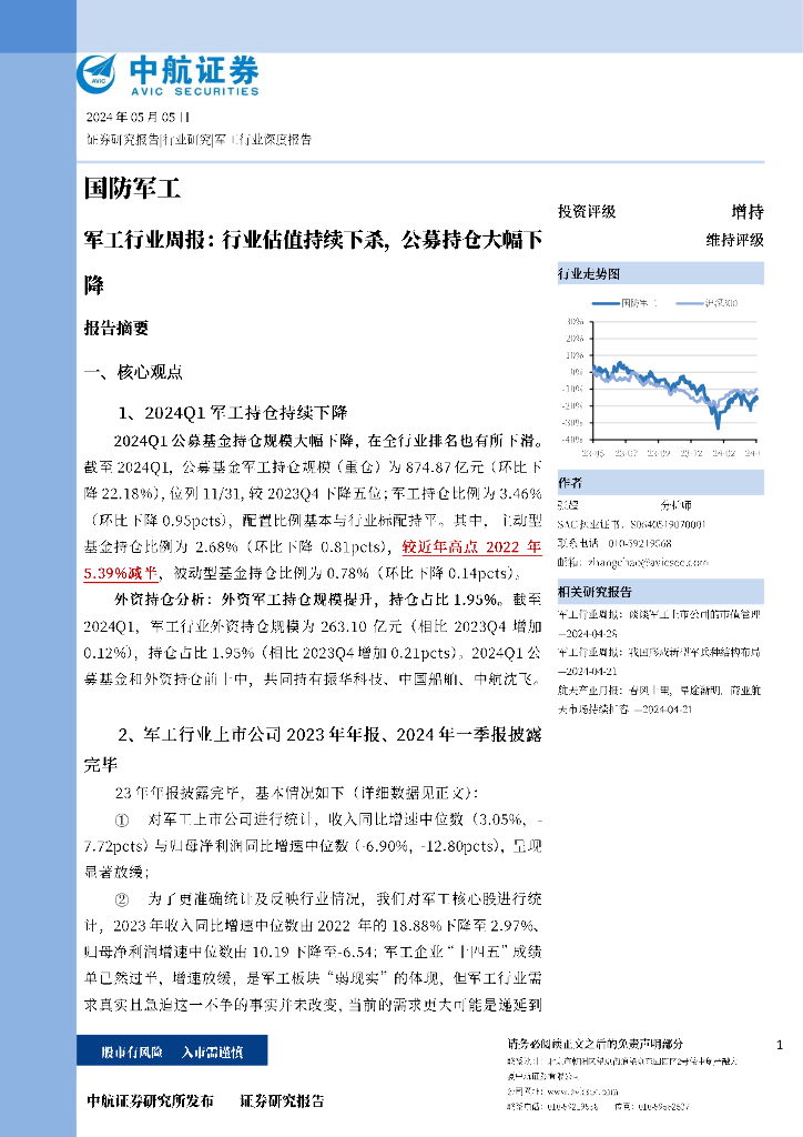 中航证券:军工行业周报:行业估值持续下杀,公募持仓大幅下降.pdf