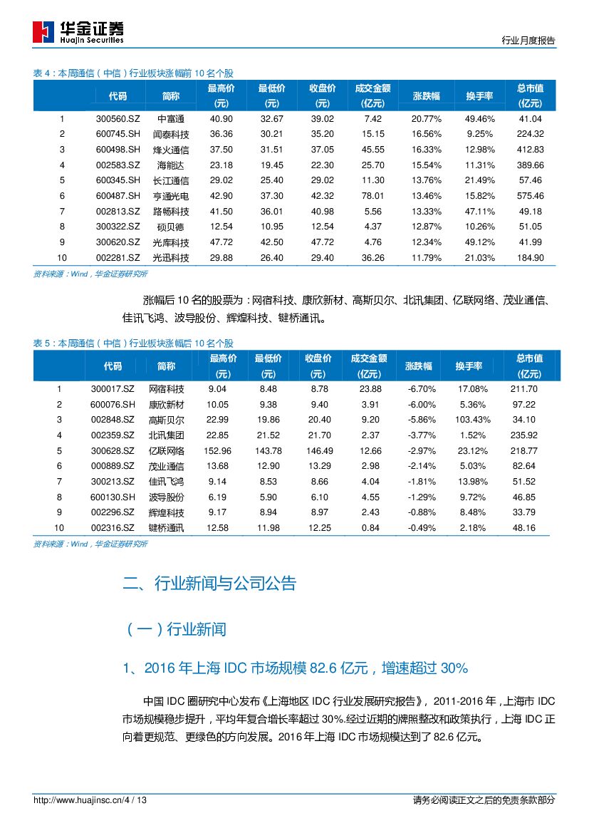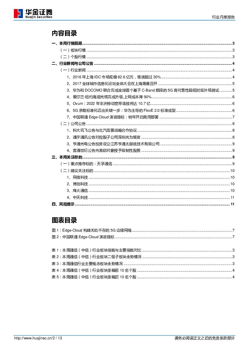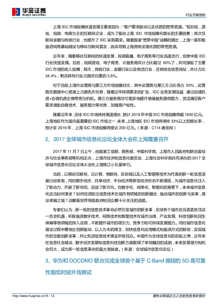 华金证券:通信行业月度报告:中国联通明年商用部署“边缘云”,2019年我国IDC市场将超1900亿.pdf