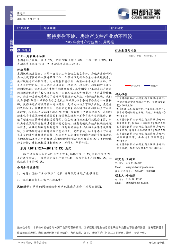 国都证券:2019年房地产行业第50周周报:坚持房住不炒,房地产支柱产业功不可没.pdf
