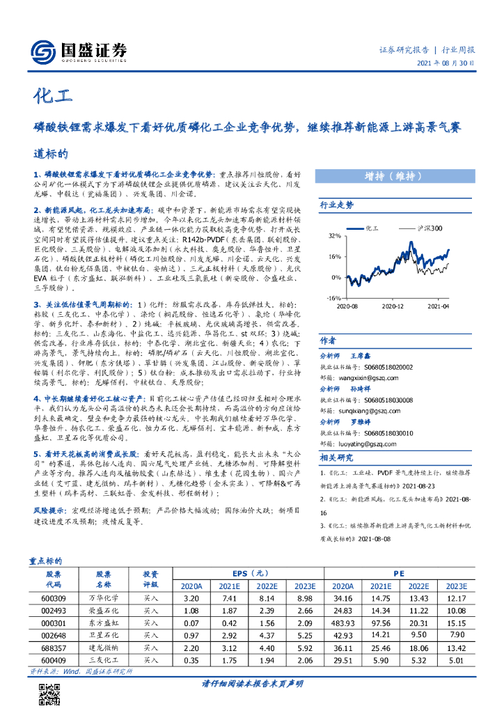国盛证券:化工行业周报:磷酸铁锂需求爆发下看好优质磷化工企业竞争优势,继续推荐新能源上游高景气赛道标的.pdf